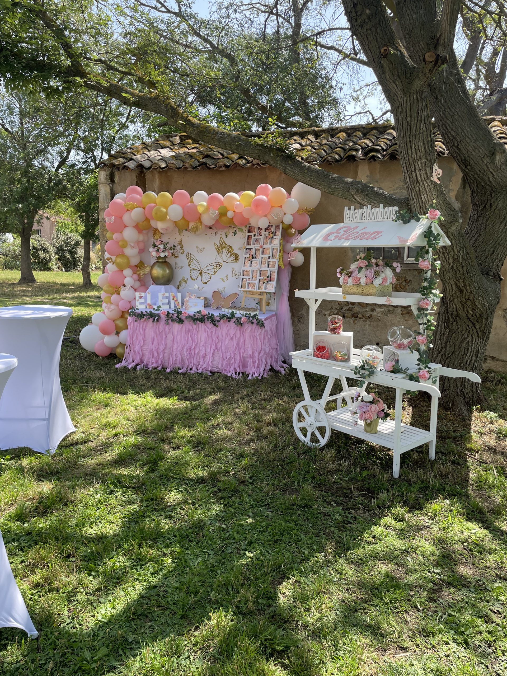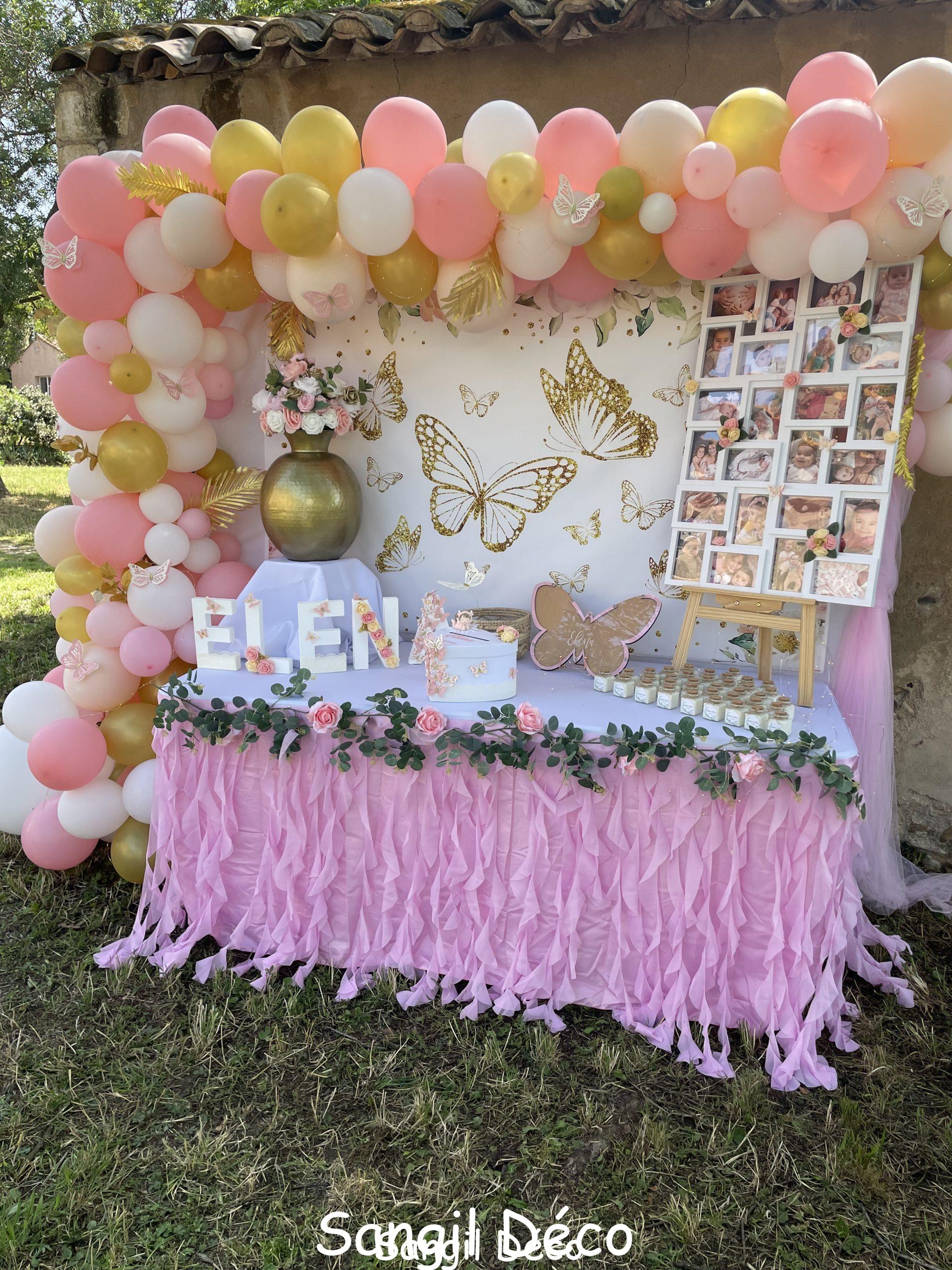 - Baptême : douceur, tendresse et pureté sont au rendez-vous. Nous réalisons des décorations délicates pour marquer ce moment symbolique, avec des teintes pastel et des accessoires personnalisés.
