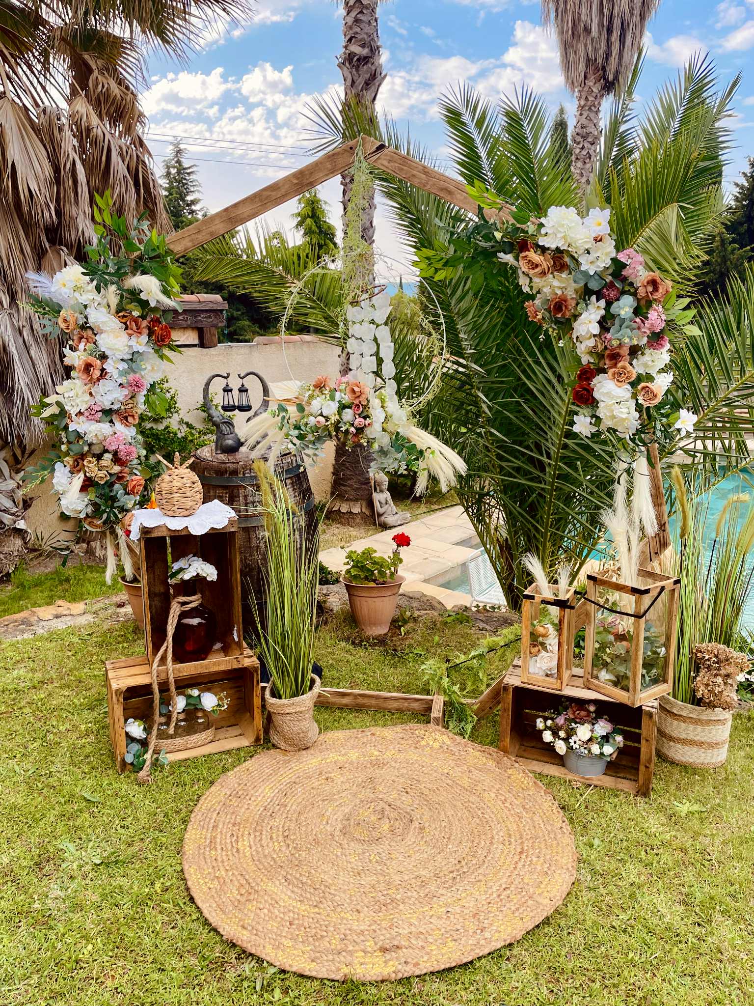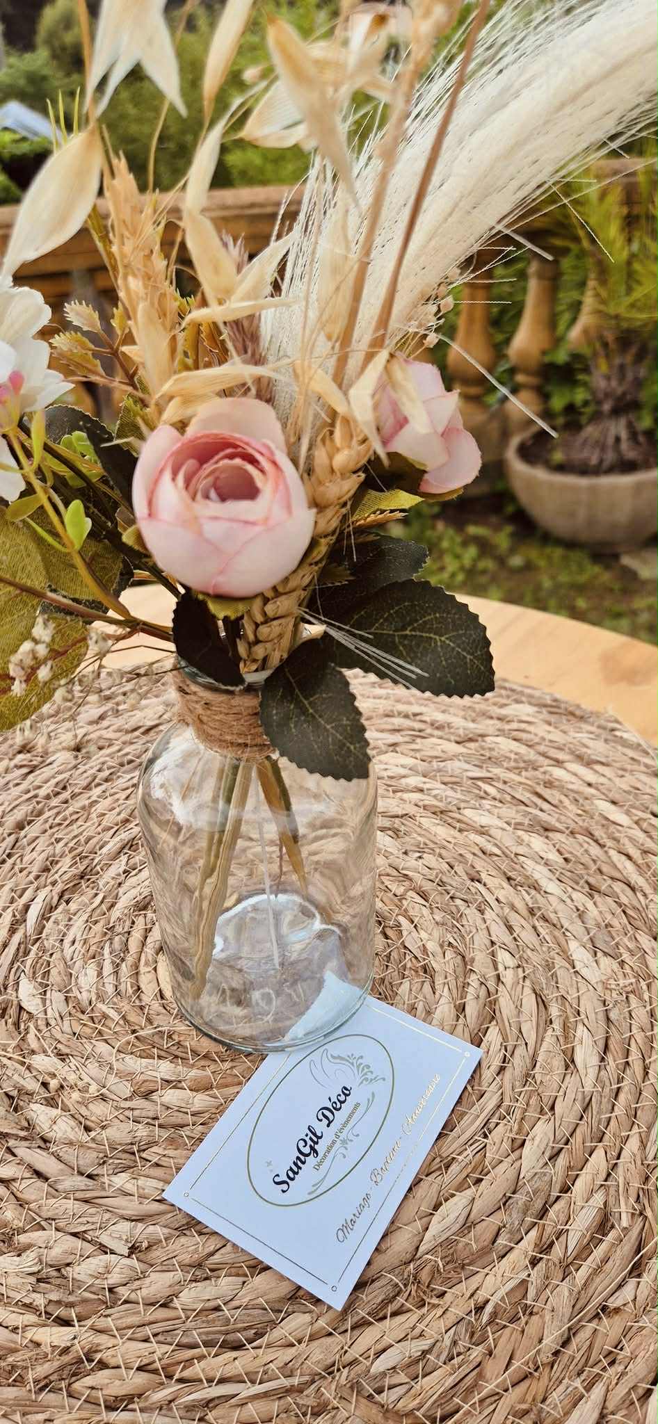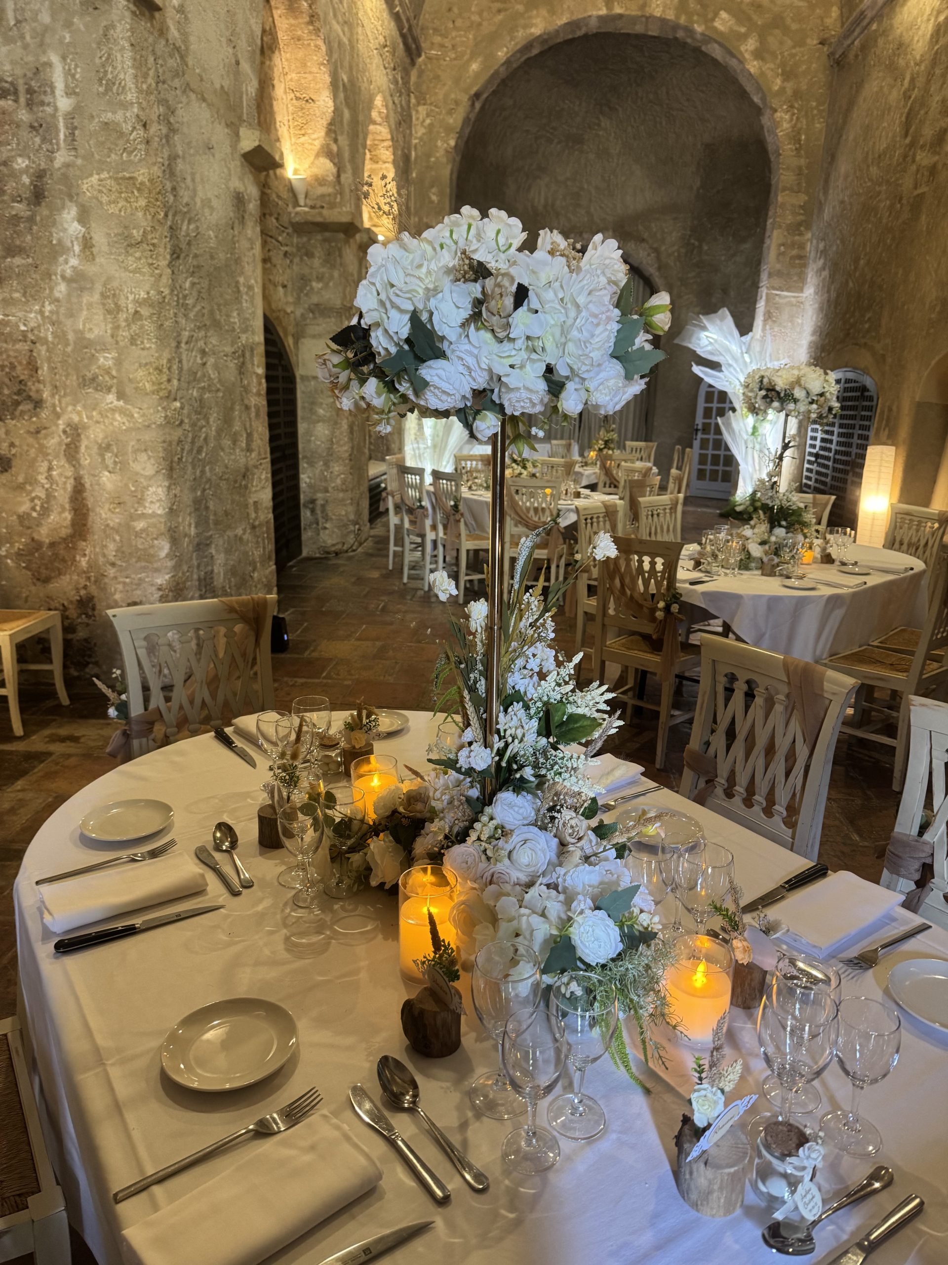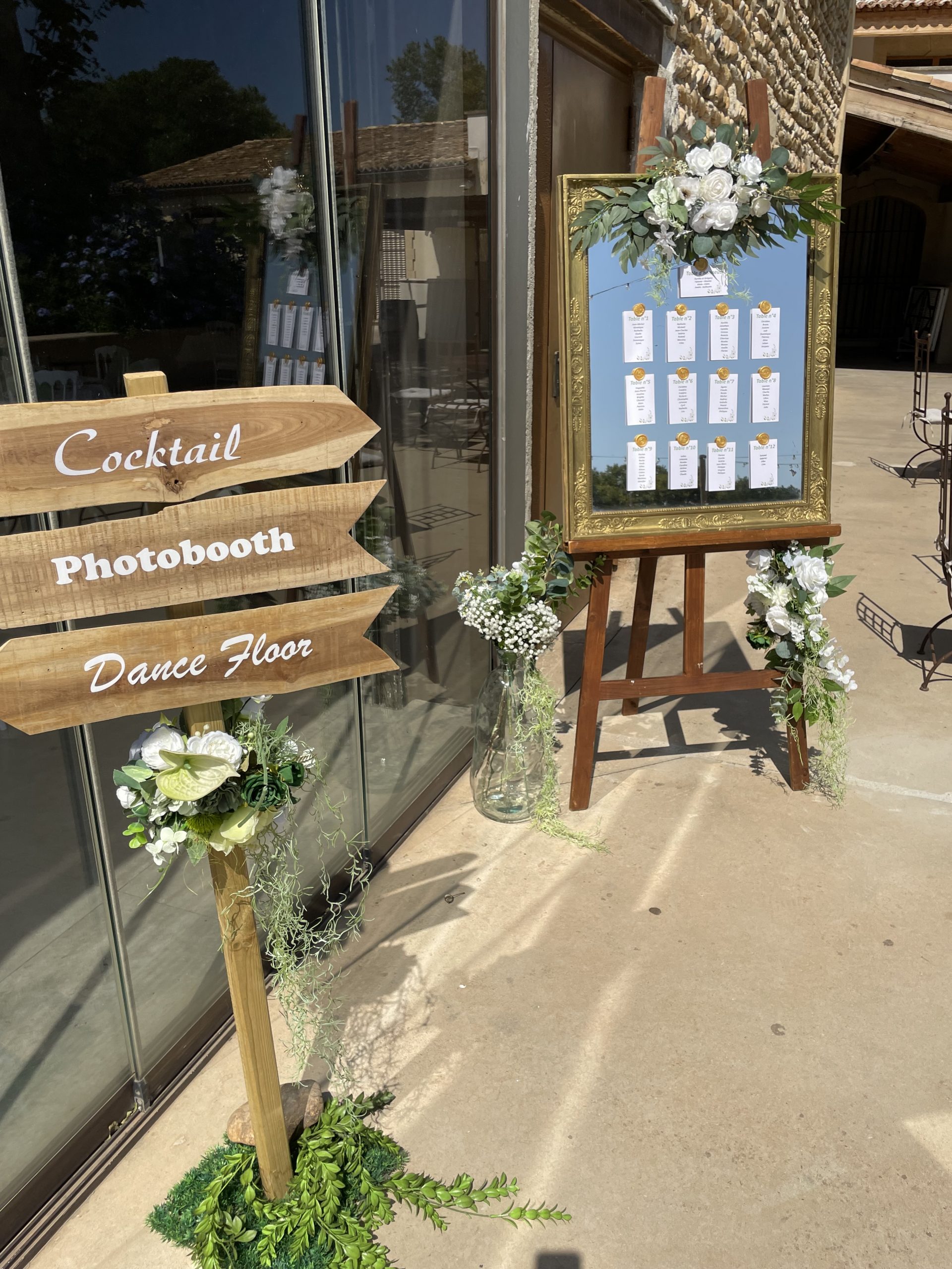 Nous mettons tout notre savoir-faire au service de votre bonheur : décoration de salle de réception, mise en scène de cérémonie laïque, création de centres de table, arches fleuries, panneaux de bienvenue, ou encore détails de table harmonisés. Nos compositions, souvent réalisées avec des fleurs artificielles de qualité premium, allient raffinement et durabilité pour un rendu parfait tout au long de la journée.