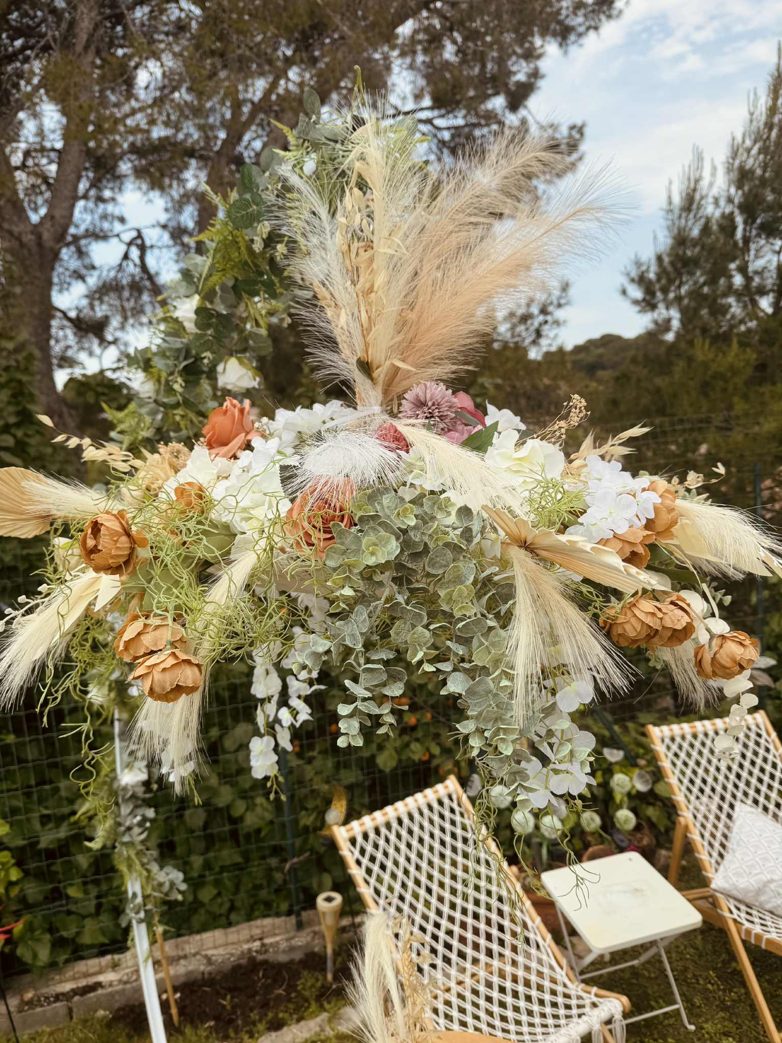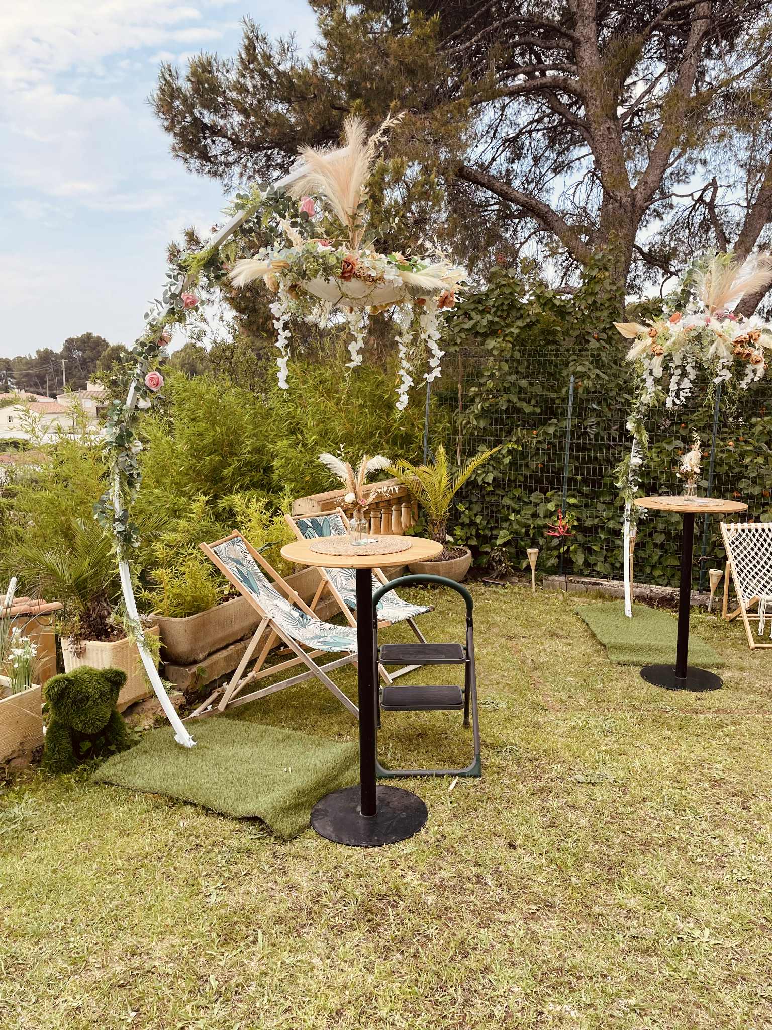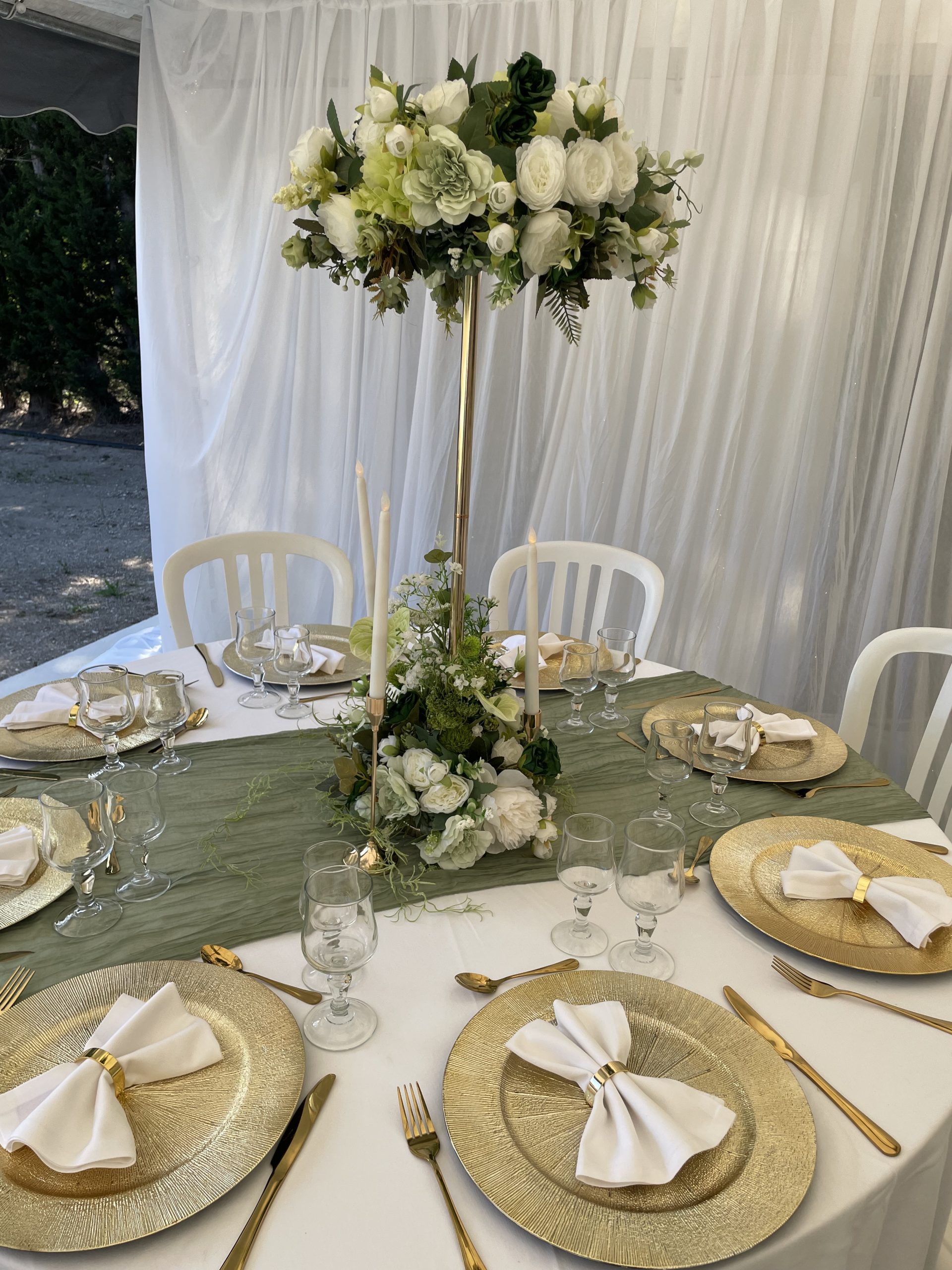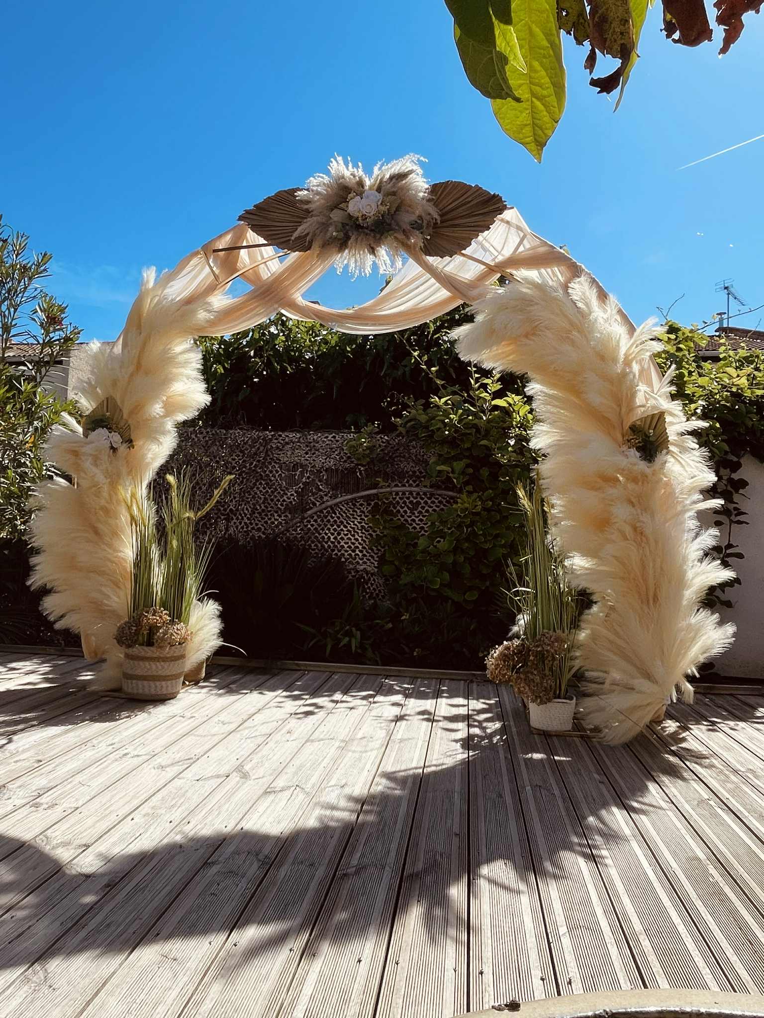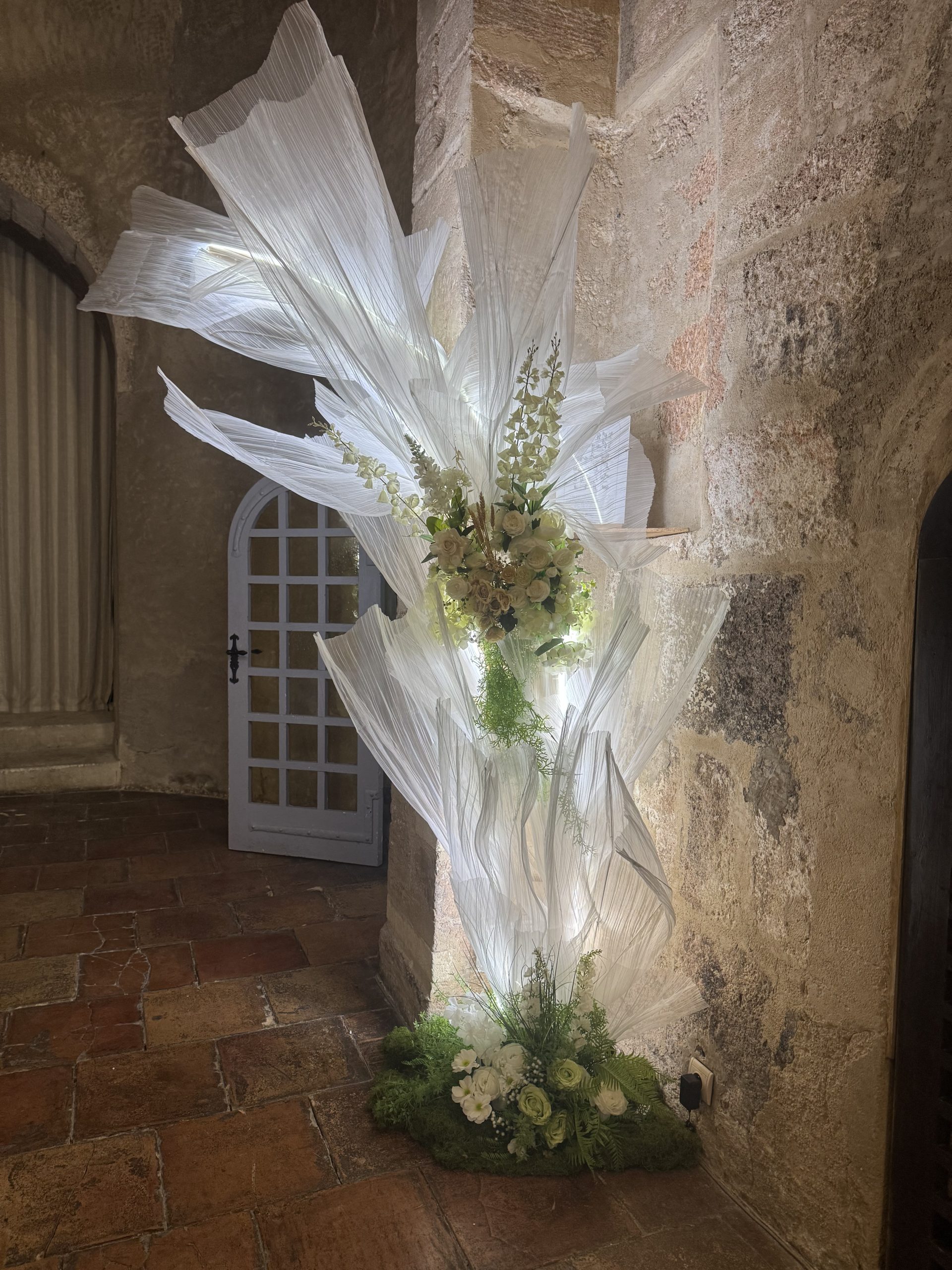Nous mettons tout notre savoir-faire au service de votre bonheur : décoration de salle de réception, mise en scène de cérémonie laïque, création de centres de table, arches fleuries, panneaux de bienvenue, ou encore détails de table harmonisés. Nos compositions, souvent réalisées avec des fleurs artificielles de qualité premium, allient raffinement et durabilité pour un rendu parfait tout au long de la journée.